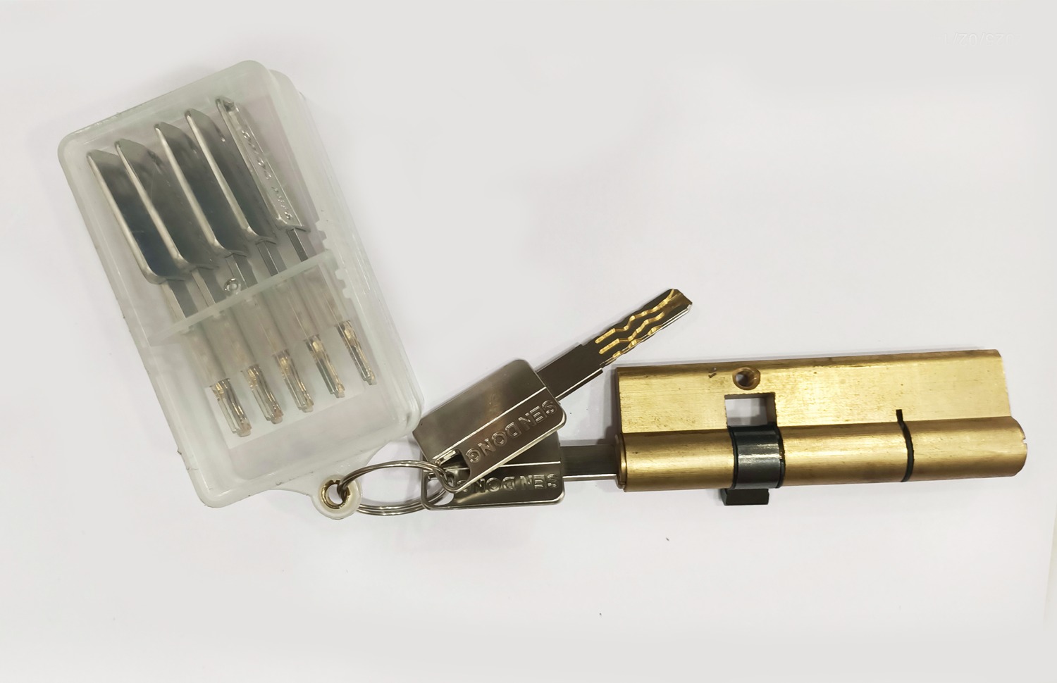 Brass keys with low friction to lift levers in locks to release the bolt and slide it inward.